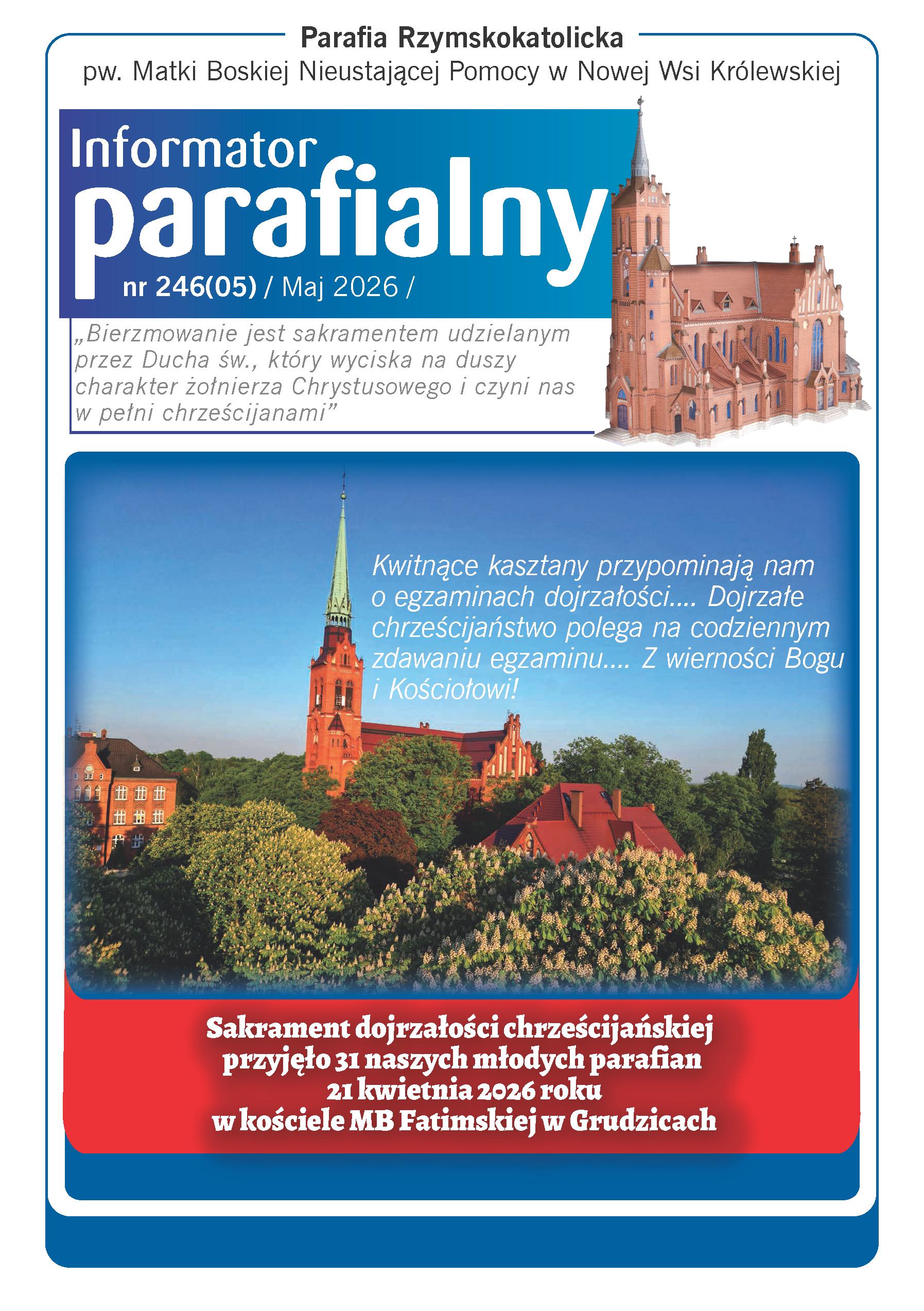 Od dziś można nabyć nowy Informator Parafialny na maj. Jest w nim wiele informacji duszpasterskich, refleksje na temat sakramentu bierzmowania, galeria fotograficzna z ostatniej uroczystości bierzmowania. Jest również zaproszenie na V zjazd pszczelarzy w naszej parafii |